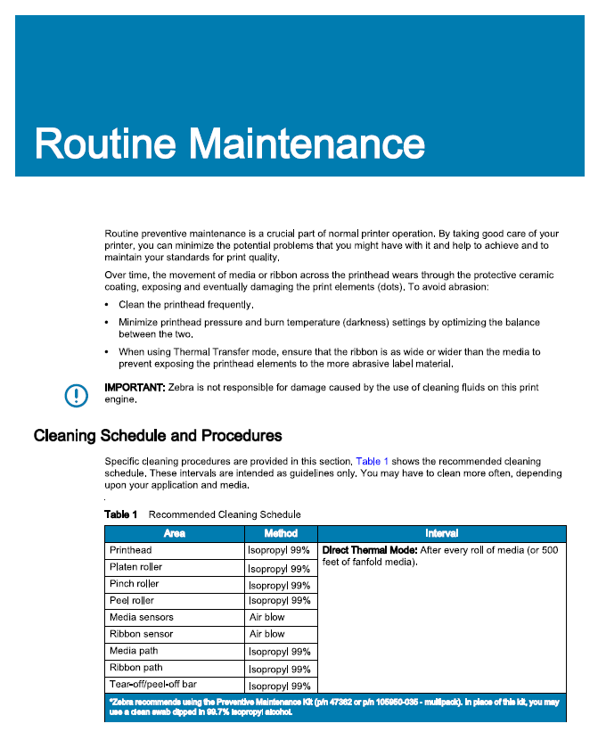 Zebra ZE511 print engine troubleshooting & Maintenance guide.